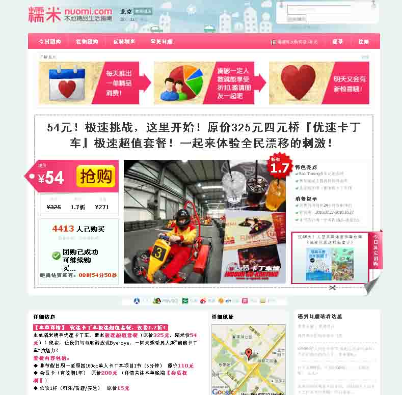 一方、本家・グルーポン中国語版はというと、八達嶺サファリパークの入場券。こちらは元値が安い上に33%引きと割引率も少なく、いまいちありがたみが……。本家とはいえ、中国での営業には苦労しているんでしょうか。