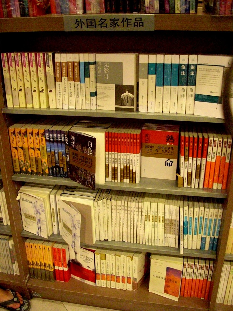 東野圭吾も大々的に新刊の広告が飾られていました。日本人として嬉しい限り。しかし、外国文学棚に行ってみると、中国における日本人作家、いや外国作家NO1は誰かということが、ハッキリと分かります。
