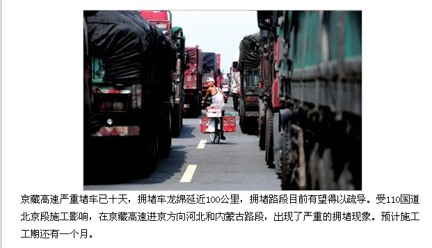 *写真は、渋滞を伝える和訊網。