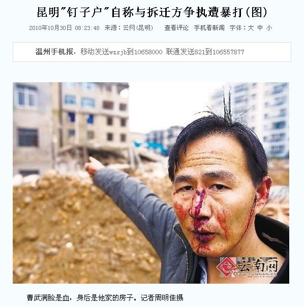 立ち退き拒否住民宅を「城攻め」=周囲の整地強行、窓に残る弾痕―雲南省昆明市」の続報です。