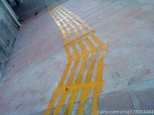 これは悪質。ペンキで描かれた点字ブロック。意味ねーだろ!(怒)