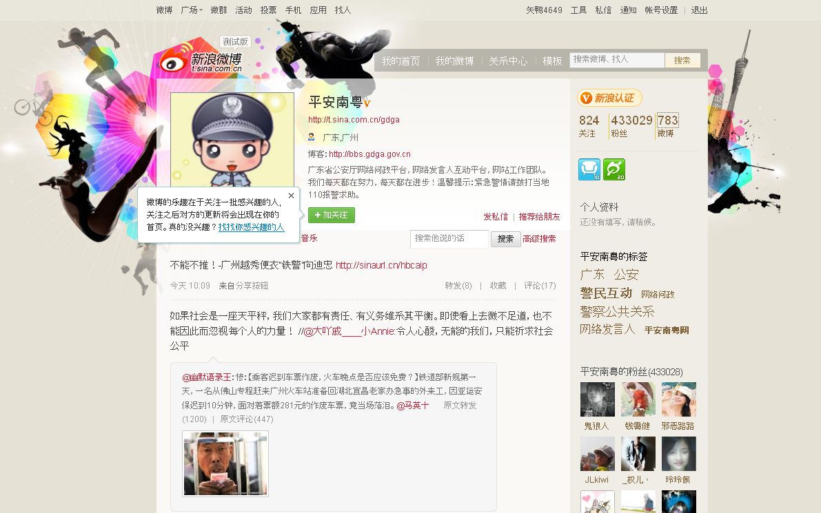 *広東省公安庁の新浪微博アカウント。