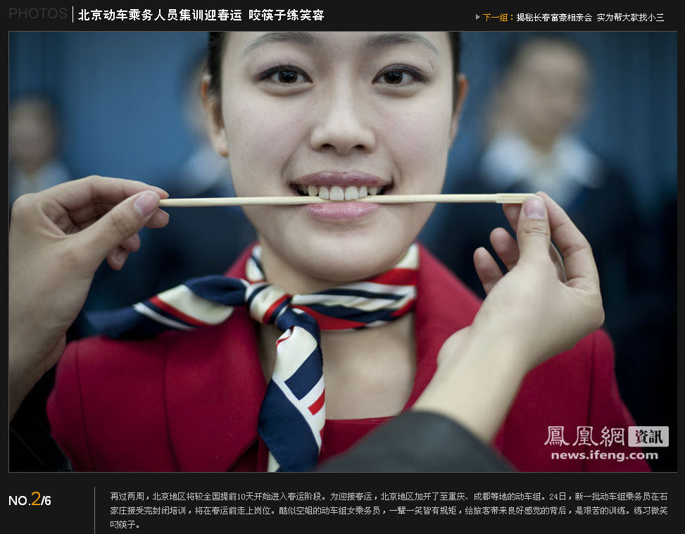 「北京高速鉄道乗務員が春運に備え特訓=はしをくわえて笑顔を練習」がちょっと面白かったのでご紹介。