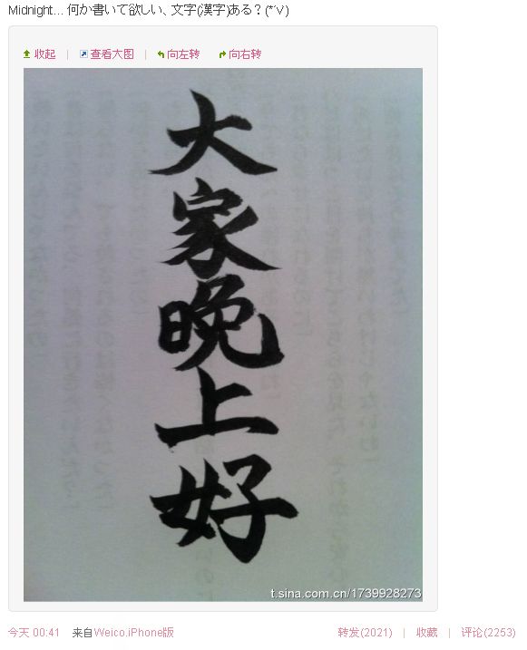 Midnight... 何か書いて欲しい、文字(漢字)ある?(*´v`)
