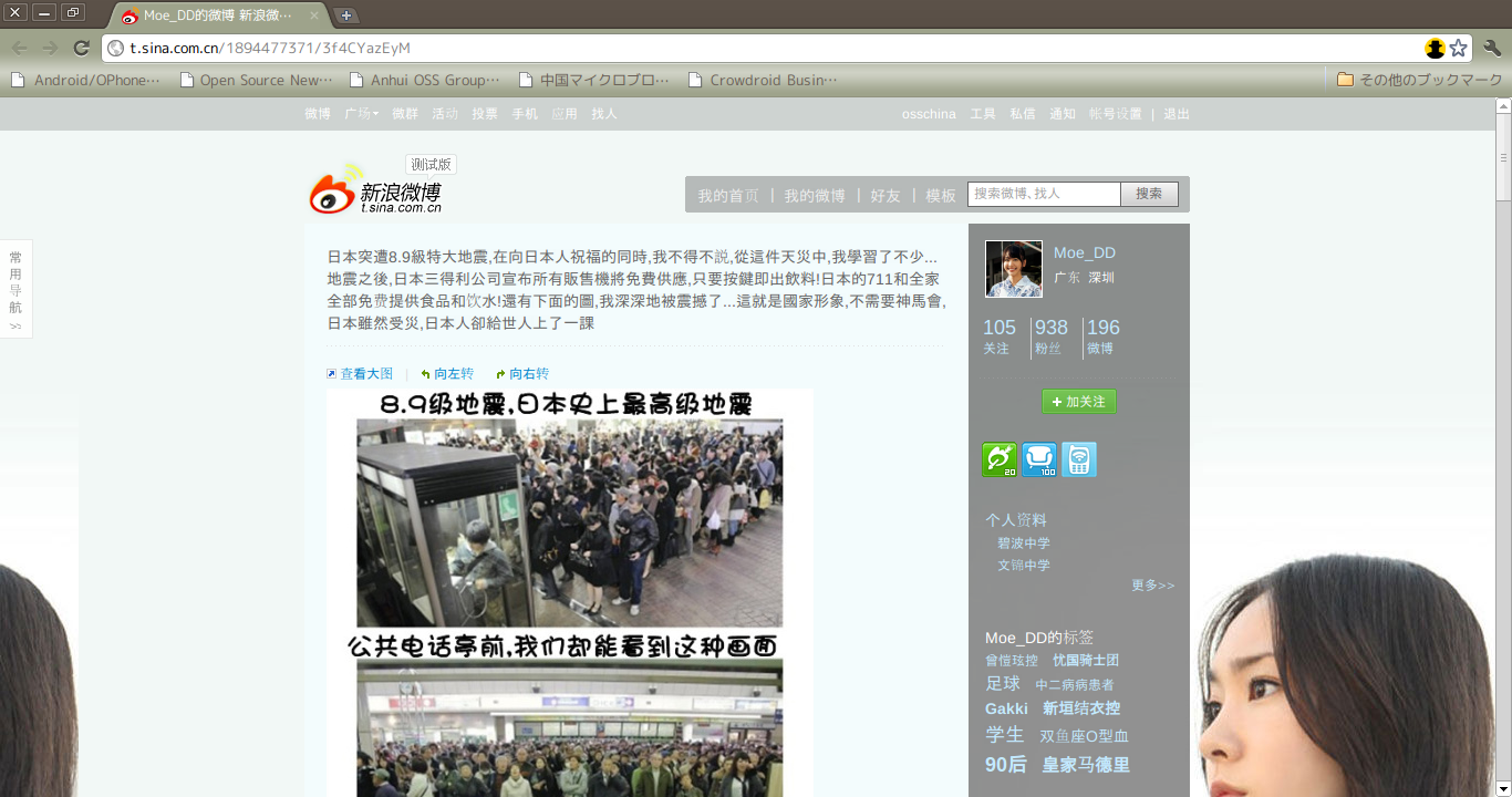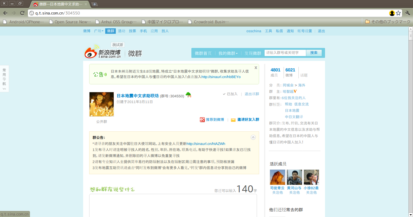 最後になりますが、新浪微博には日本の地震に関する特設ページがあります。