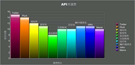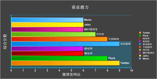 Twitterと新浪微博が9点で同率首位、Plurkと嘀咕网(digu)が8点でそれに続いています。