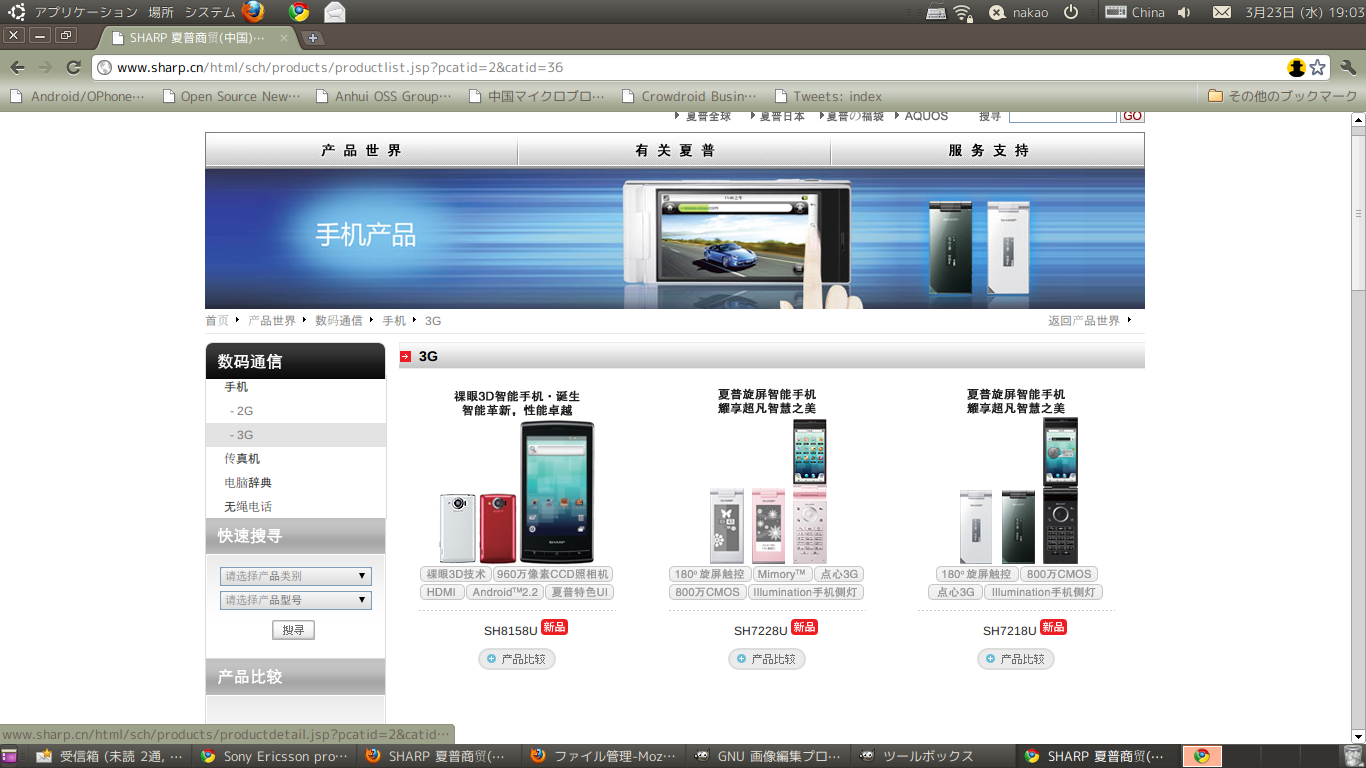 今回発表された4機種はSH-8168U以外の3機種は既にシャープ中国の製品ページにも掲載されています。