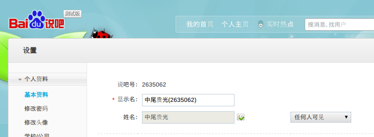 実際に設定のところでも「显示名(表示名)」の欄は赤いマークが隣についており、入力必須になっていますが「姓名」の部分は赤いマークがなく入力が任意になっています。