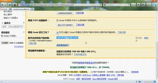 アカウントへのアクセスを許可」欄を確認すると、許可した覚えのない謎のアカウントが登録されている。つまり、この謎のアカウントが自由にメール送信、削除、閲覧をできるようになっている。