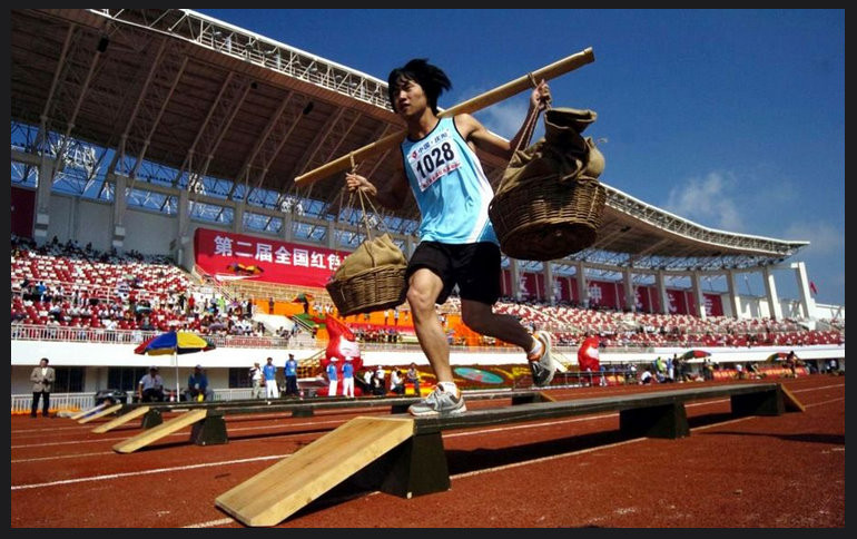 「革命戦争要素を取り入れたスポーツ大会」という趣旨とのこと。「企画を考えたやつ、ちょっとでてこーい」という内容ですが、お国のお墨付きを得ているだけあって、相当量の報道があるのがびっくりです。