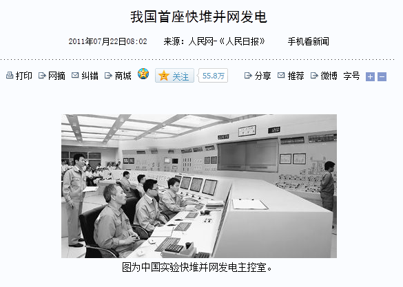 実験炉の発電成功で、高速増殖炉の商業化に自信を持ったのでしょう。福島原発事故を目の当たりにして、中国政府内にも原子力開発計画に対する迷いが生じているのではないかと私は感じていました。震災以降の福島原発に関する中国メディアの報道に、その迷いは十二分に反映されていたのです。
