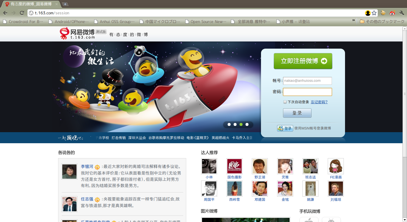 自社で圧倒的なユーザー数を誇るサービスから微博ユーザーの増加を図っていくというのは、中国の代表的なインスタントメッセンジャーQQを擁する腾讯の戦略に通ずるものがあります。网易微博が网易通行証とうまく連携して、どうユーザー数を今後増やしていけるのか、注目されるところです。