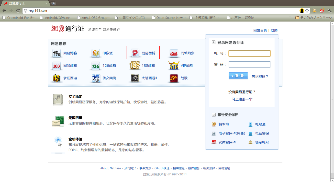 その様々に展開しているサービスと微博を蜜に連携させるため、网易通行証との連携を開始しました。