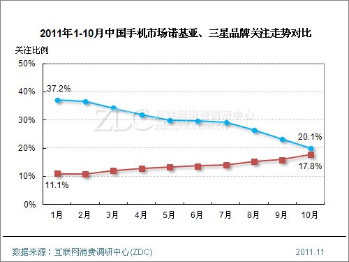 オンライン調査会社のZOLから「2011年10月度中国携帯電話市場分析レポート」が発表されたのでご紹介。