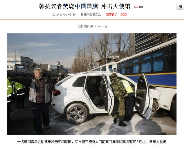 【写真】中国国旗を燃やし大使館に車で突撃=激怒する韓国人と中国の反応