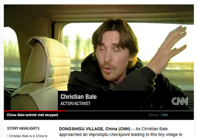 バットマン・シリーズで知られる俳優のクリスチャン・ベール。チャン・イーモウ監督が南京大虐殺を題材に撮影した映画「金陵十三釵」(ザ・フラワーズ・オブ・ウォー)に出演し、プロモーションのために中国を訪問していた。同作は12月16日から中国で一般公開。