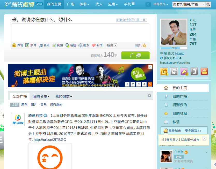 騰訊微博、ユーザー数3億1000万人に=低すぎる稼働率アップが命題(11年第三四半期)―中国(osschina)