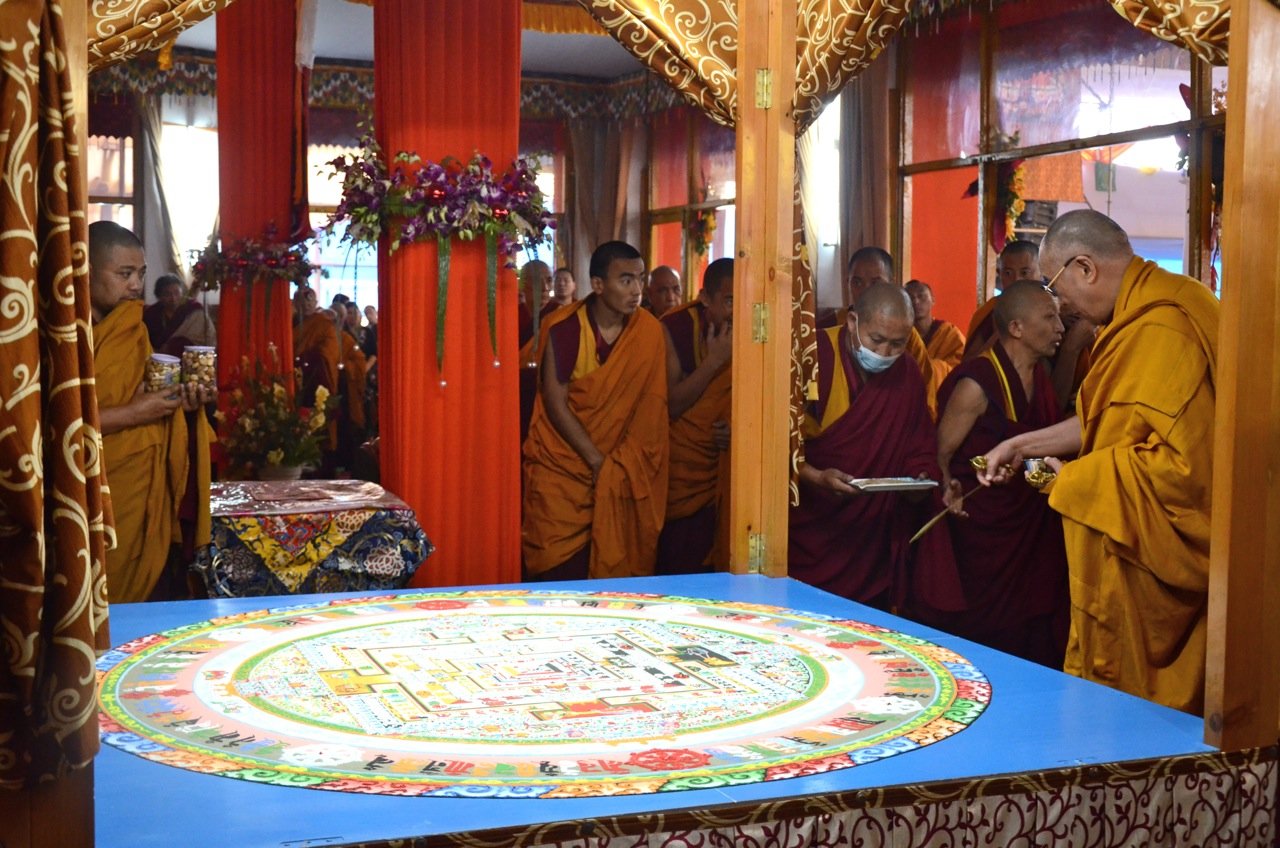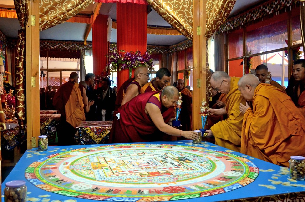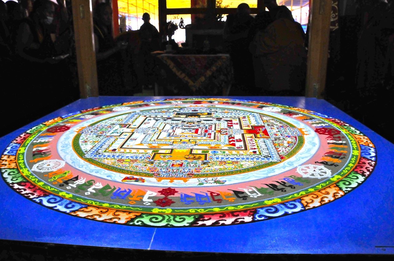 灌頂には砂マンダラが必須。今日完成したカーラチャクラの砂マンダラ。14