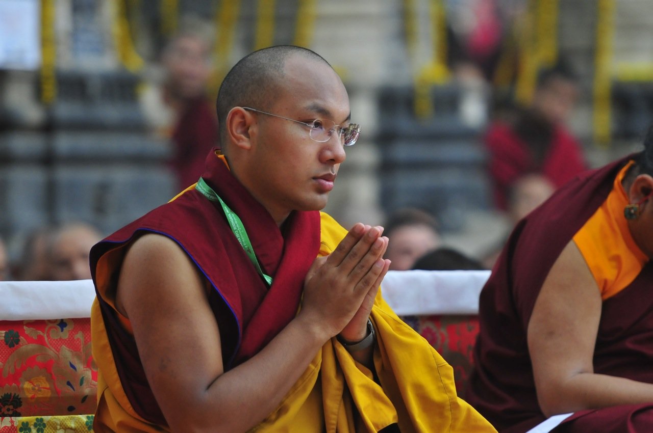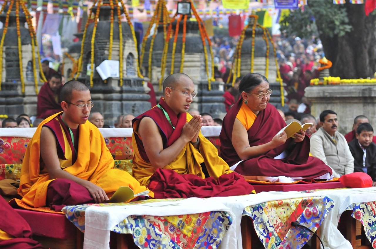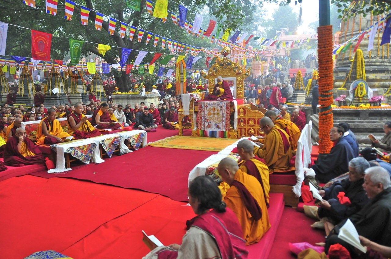 1時間半ほどのモンラムが終った後、すぐにカーラチャクラ会場に入られ、カーラチャクラの成就次第等を会場の僧侶たちと共に唱えられた。