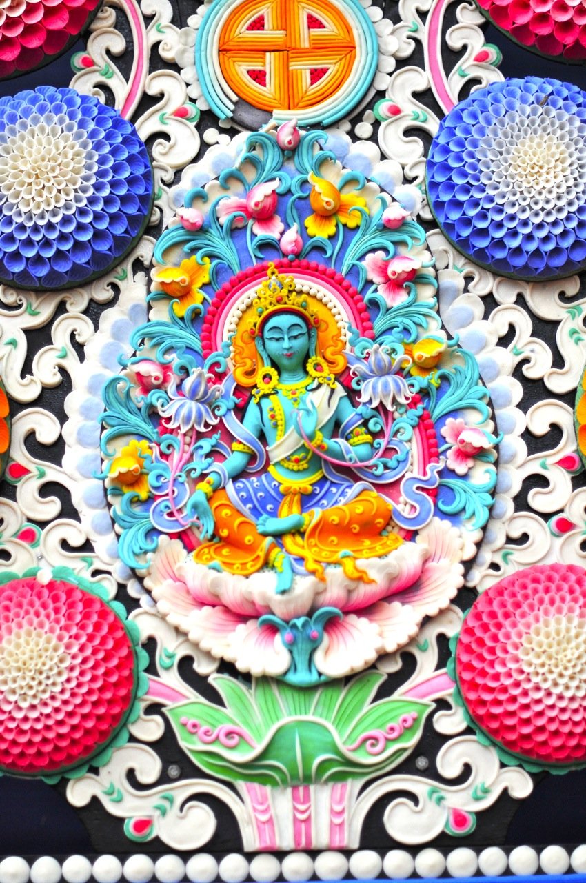 ギュト僧院制作のバター製大トルマ。以下の2枚はその部分。ミラレパとドルマ。