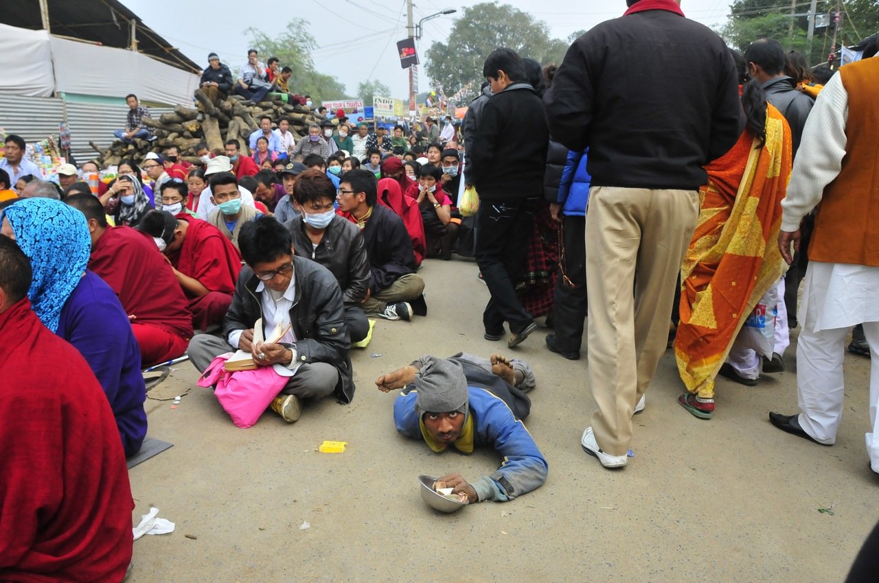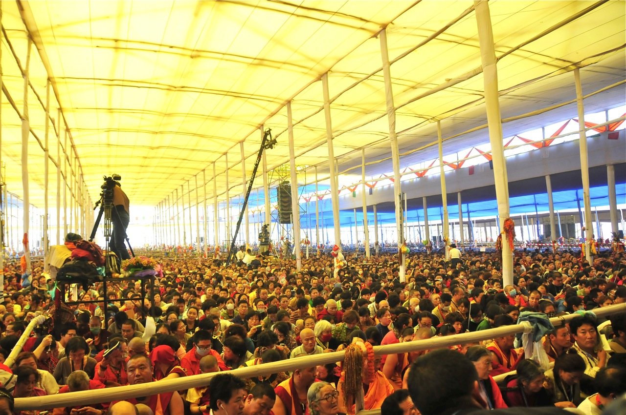 会場の周りには至る所に溢れた人たちが大勢座り込んで、スピーカーから流れる法王の声に耳傾けている。参加者はすでに20万人をゆうに越えたらしい。
