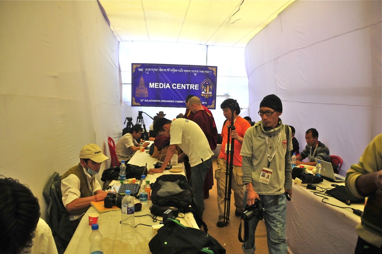 ブッダガヤでは今日2012年1月9日午後から、いよいよカーラチャクラ灌頂が始まった。今日は準備の日であり、法王が無上ヨガタントラの原理について説明し、参加者にまず仏教徒の戒、続いて菩薩戒を授けられた。最後に今夜寝床の下に敷いて朝方の夢を占うためのクシャ草とお守りの赤い紐(スンドゥ)が配られた。