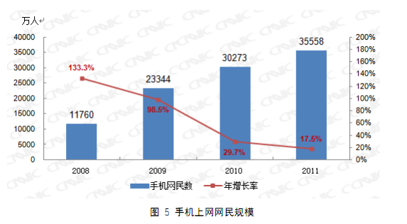 モバイルインターネットユーザー数は3億5600万人に達しましたが、増加率は前年の29.7%から17.5%に鈍化しています。2012年はモバイルインターネットユーザー数が、PCなど一般のインターネットユーザー数を超えるとの予測もありますが、果たしてどうなるのでしょうか?