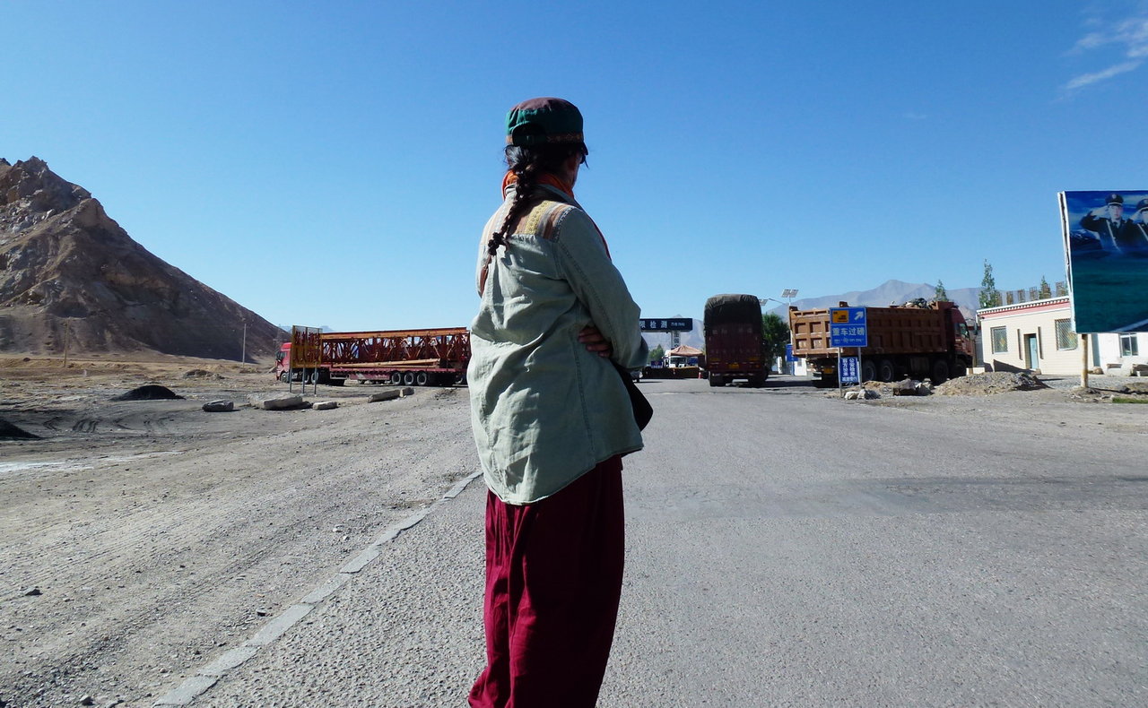 *私がチベット族であったため、青蔵公路の最初のチェック・ポストで8時間も止められた。写真は乃吉溝チェック・ポストをぼうぜんと眺めているウーセル。