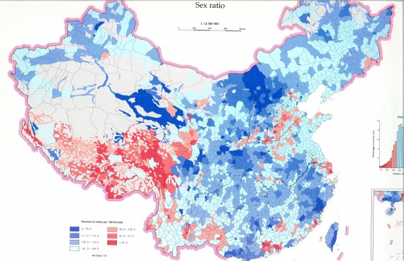 エリオット・スパーリンク教授は写真に加え、1982年の国勢調査後に中国当局作成した「性別比グラフ」を虐殺の証拠としている。「1982年のチベット高原では広範囲にわたり、男女比のバランスが崩れている。この不均衡を説明できるのは暴力闘争だけだ。地図の赤色は女性の数が恒常的に男性の数をしのいでいる地域だが、中国全土を見てもチベット高原に赤が集中していることが目立つ」、と。