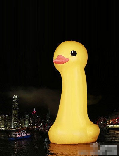 ラバーダックin香港。空気が抜けて「すわ、鳥インフルか?」とネタになったのは記憶に新しいところ。