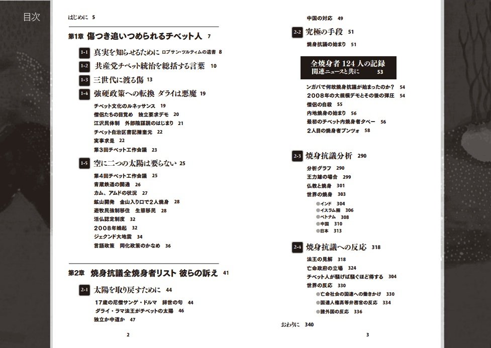 幾つかの記事や記録はすでに当ブログで発表したものです。これはもう読んだなというところがあれば、どうぞ飛ばして下さっても結構です。残念ながら、昨日ネパールのカトマンドゥで、さらにもう1人のチベット人が焼身抗議を行い、死亡されています。彼を入れれば2009年以来の焼身者の数は125人となるのですが、この本には彼の記録は含まれていません。
