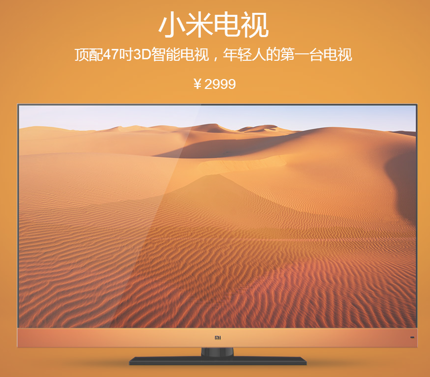 Xiaomiはさらにテレビにまで進出。従来販売していたセットトップボックスに加え、新たに47インチ2999元(約4万8600円)という激安価格のスマートテレビを発表した。こちらもアンドロイドベースのOSが搭載されている。ベゼルがわずか8.4ミリという薄さでデザインもすばらしい。サイトによると、ソニーが使っているOEM工場で製造したとのこと。